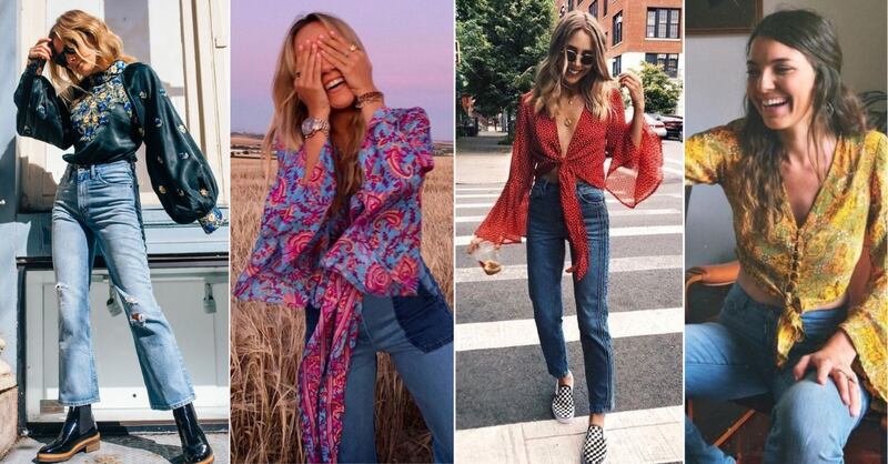 Las blusas boho con jeans serán el básico más chic de la primavera
