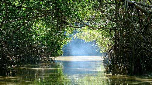 Manglar se llama al ecosistema que forman un conjunto de mangles; árboles muy tolerantes a la sal que ocupan las zonas donde los rios de agua dulce se encuentran con los mares tropicales (el más grande se encuentra en Bangladesh, otros en Ecuador). Uno de los ecosistemas mas rícos del planeta, hábitat de numerosas especies de aves, peces, anfibios, crustáceos y moluscos -entre otros- proporcionan además una protección natural contra catástrofes como los huracanes y tsunamis, controlando la erosión producida por el oleaje y conteniendo la entrada del mar cuando azotan los ciclones.