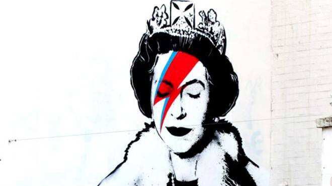El afamado grafitero Banksy ha dejado en un muro de Bristol -Inglaterra- una pintura de la reina Isabel II donde aparece con la cara pintada como David Bowie.