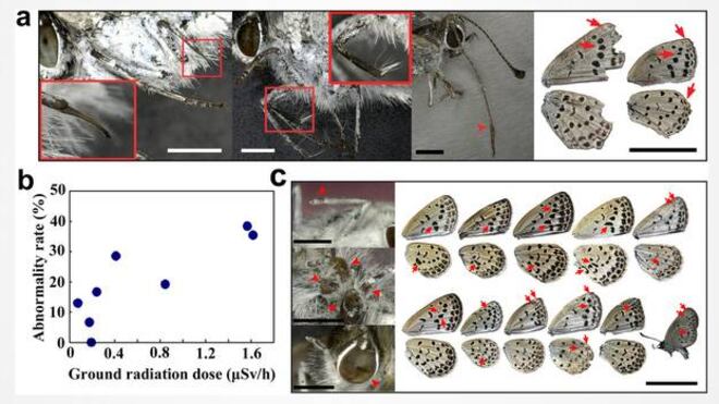 El estudio puso al descubierto que las mariposas sufrieron mutaciones en sus alas y ojos con una incidencia que aumenta proporcional a las generaciones que se suceden. Fue solo el 12% de las larvas de mariposa expuestas a la radiación en 2011 las que tuvieron estas malformaciones, mientras que el 18% de la segunda generación sufrió las mismas consecuencias. De la tercera el 38% tuvo anomalías y 52% de la cuarta, seis meses después del desastre nuclear, manifestó este evidente deterioro.