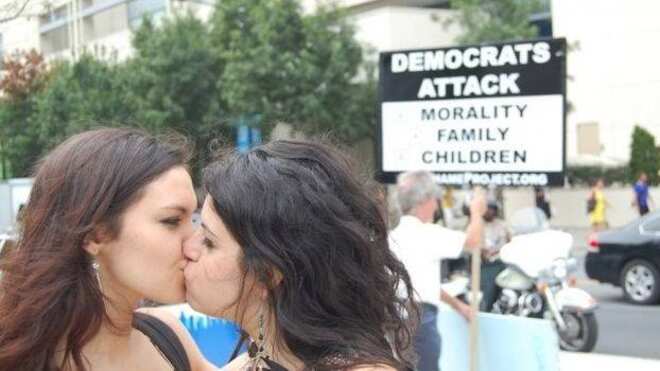 Por eso, fuera de la gran convención que se llevó a cabo Charlotte, North Carolina del 4 al 6 de septiembre, varios republicanos se reunieron para protestar contra lo “inmoral” e incorrecta que es la iniciativa demócrata, clamando que atenta contra los valores familiares, la moral y la juventud.