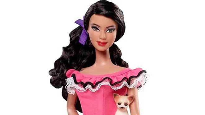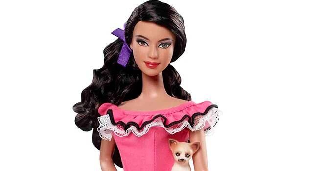 La Barbie mexicana, lleva un representativo vestido color rosa, un perro Chihuahua en la mano y un pasaporte, “tiene un diseño inspira o en mariachis, marimbas y está lista para cualquier fiesta” asegura la marca de juguetes. El vestido y el perro están perfectos pero ¿y el pasaporte? ¿cuál es la necesidad de que una muñeca incluya pasaporte?