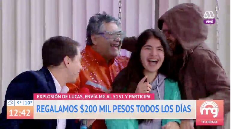 El «Mucho Gusto» de Mega, además de hacer despachos desde distintas partes del país y la capital, tiene en su espacio el concurso «Explosión de lucas», donde Karol Lucero le hace a dos participantes distintas preguntas de actualidad y cultura general para así llegar a ganarse 200 mil pesos.
