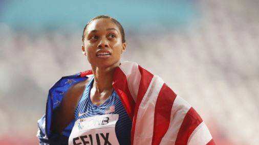 Apenas 10 meses después de dar a luz a su hija, la velocista Allyson Felix está nuevamente en la cima del podio y rompiendo récords mundiales.