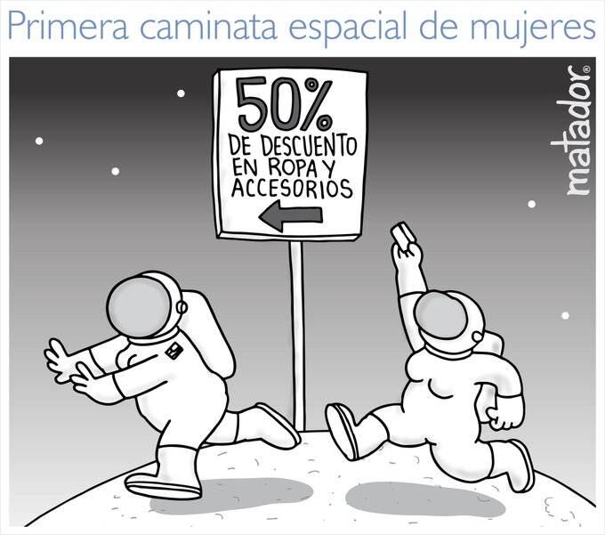 Esto hizo Matador, el famoso caricaturista, al responder indirectamente a las críticas que se le hicieron por su misógina caricatura sobre la caminata espacial.