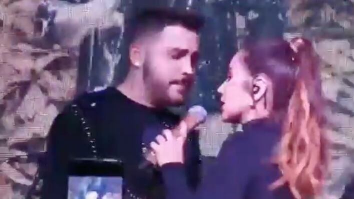 El cantante se conforma con darle un beso en la mejilla, pero en la mirada de ambos se nota que hay una intención de algo más.