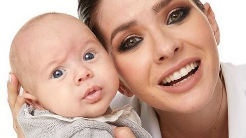La actriz estaba muy feliz estrenando un vestido nuevo con su hijo en brazos, cuando sin preverlo, el pañal explotó y dejó salir el ‘popó’ de su bebé.