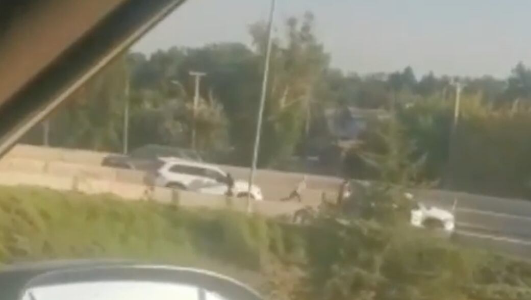 Se bajaron sujetos en el enlace de Vespucio Norte con Los Libertadores para robarle el vehículo a la mujer, quien retrocedió y esto provocó que los delincuentes huyeran.