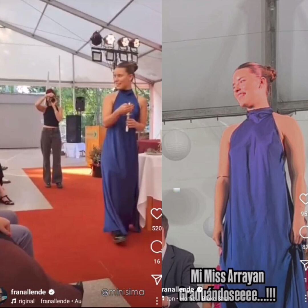 A través de videos que compartió su madre Francisca Allende en Instagram, se vio a la joven de 19 años durante el importante evento de su vida académica y siendo abrazada por su orgullo padre, quien la felicitó tras graduarse de cuarto medio.