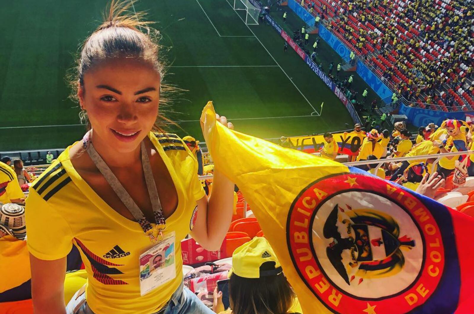En las imágenes en video Epa Colombia luce una camiseta de la selección, como abiertamente se le veía en los estadios de fútbol. También se le aprecia más joven, conservada y con brackets en sus dientes, sin duda que muy distinta a lo que ahora le vemos en su cuenta oficial.