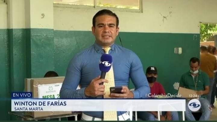 De todos los comentarios y memes que se iban posteando en redes sociales, surgió uno de un reportero del Canal Caracol, su nombre es Winton de Farias, y el ajuste que la camisa usada por el presentador para reportear este crucial acto cívico terminó costándole duras críticas que le llovieron gracias a su apariencia.