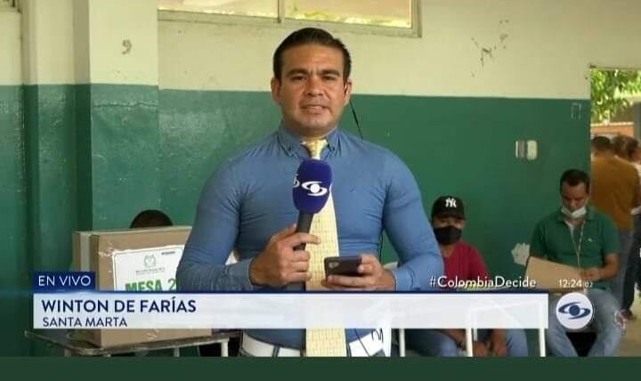 De todos los comentarios y memes que se iban posteando en redes sociales, surgió uno de un reportero del Canal Caracol, su nombre es Winton de Farias, y el ajuste que la camisa usada por el presentador para reportear este crucial acto cívico terminó costándole duras críticas que le llovieron gracias a su apariencia.