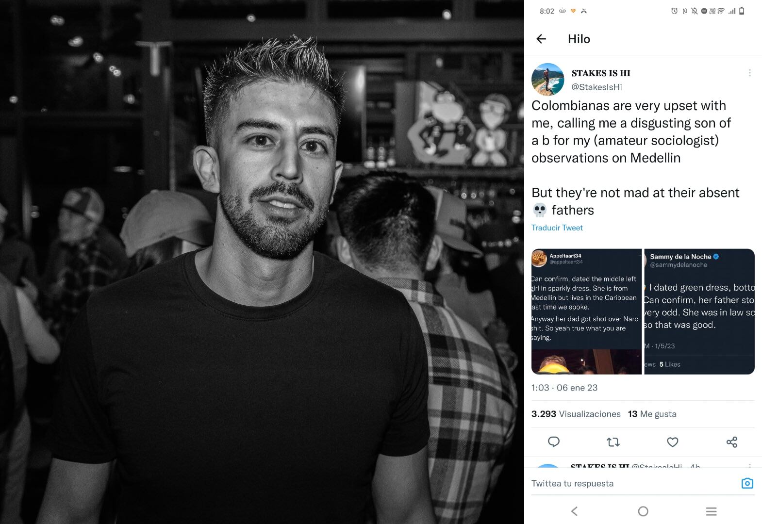 “Las colombianas están muy molestas conmigo diciendo que soy un hijo de p... por mis observaciones (de sociológico principiante) sobre Medellín. Pero no se molestan con sus padres ausentes”, afirmó el hombre a través de Twitter.