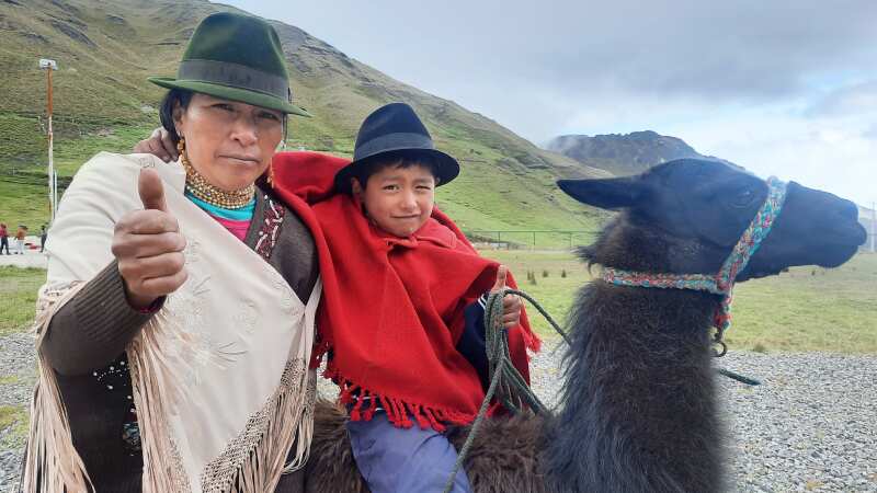 El pequeño sale muy temprano desde su casa acompañado de Bejamín, una llama joven que lo transporta todos los días. Realiza una travesía por las montañas de Cotopaxi para dirigirse hasta su centro educativo en Suniquila, Angamarca,