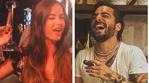 Maluma demostró que le gusta tener las manos en el cuerpo de la modelo, y así se le sorprendió mientras le daba unas palmadas en la parte trasera inferior de la bella de origen cubano-croata.