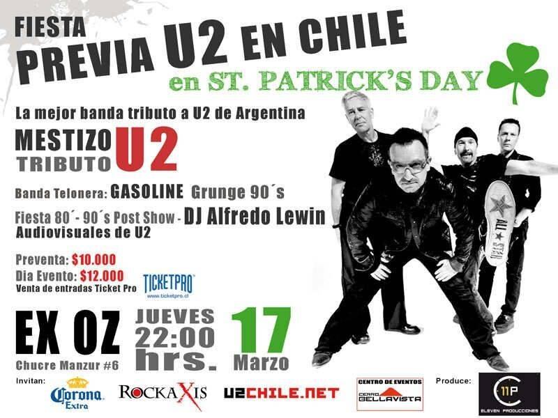 Fiesta Previa U2 en Chile en St. Patrick’s Day