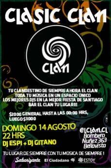 [ficha]Un amplio abanico de bandas nacionales e internacionales se presentan a diario en el escenario de Bar el Clan , lo que lo convierte en una interesante y consolidada vitrina de difusión musical en Chile, y como si esto fuera poco, las fiestas continuan con un variado staff de Djs quienes tienen como misión satisfacer a los mas diversos gustos.