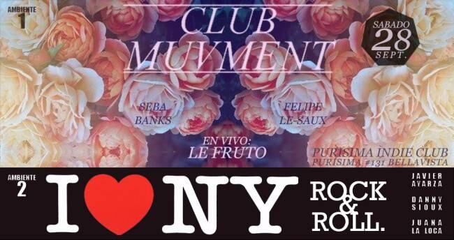 Este Sábado 28 por la noche por primera vez Club Muvment + I ♥ New York Rocks en Purisima Indie Club. Cuyos dos ambientes harán de esta jornada una noche perfecta llena de buena música para los que están aburridos de la fiebre dieciochera.