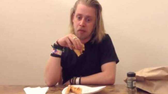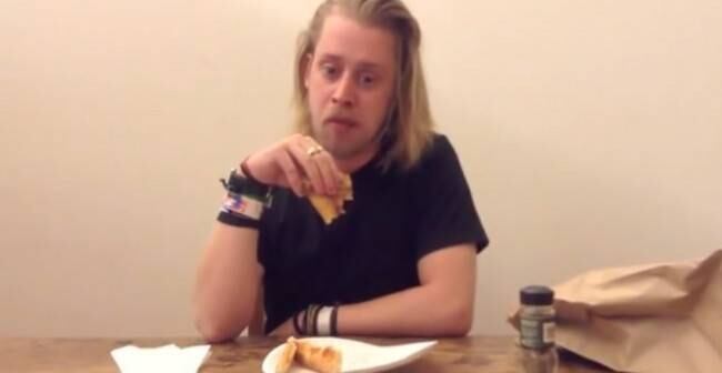 En el clip de más de 4 minutos de duración, Culkin come un trozo de pizza frente a la cámara, tal como lo hizo el artista Pop Art, Andy Warhol, cuando se filmó comiendo una hamburguesa en una de sus tantas manifestaciones artísticas.