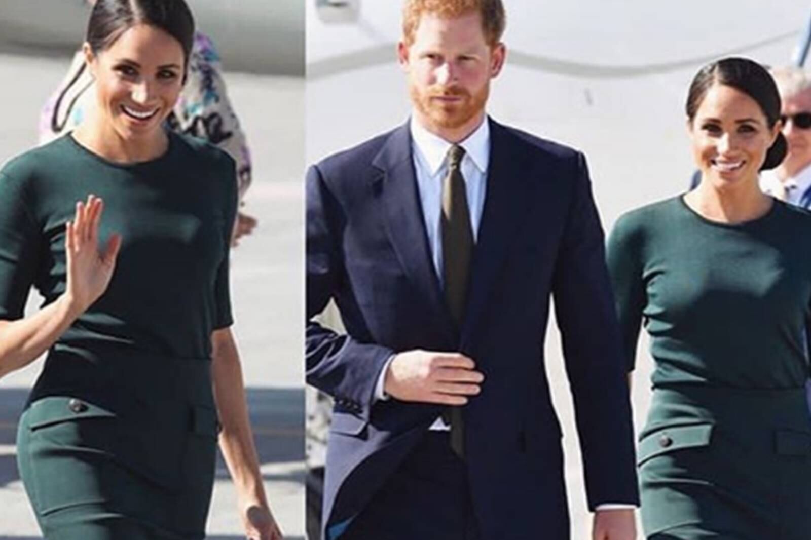 Meghan nuevamente dejó a todos sorprendidos, con un estilo mucho más desenfadado que la silueta brobet de esta mañana, pues lució un dos piezas verde botella, color representativo del país anfitrión de Givenchy.