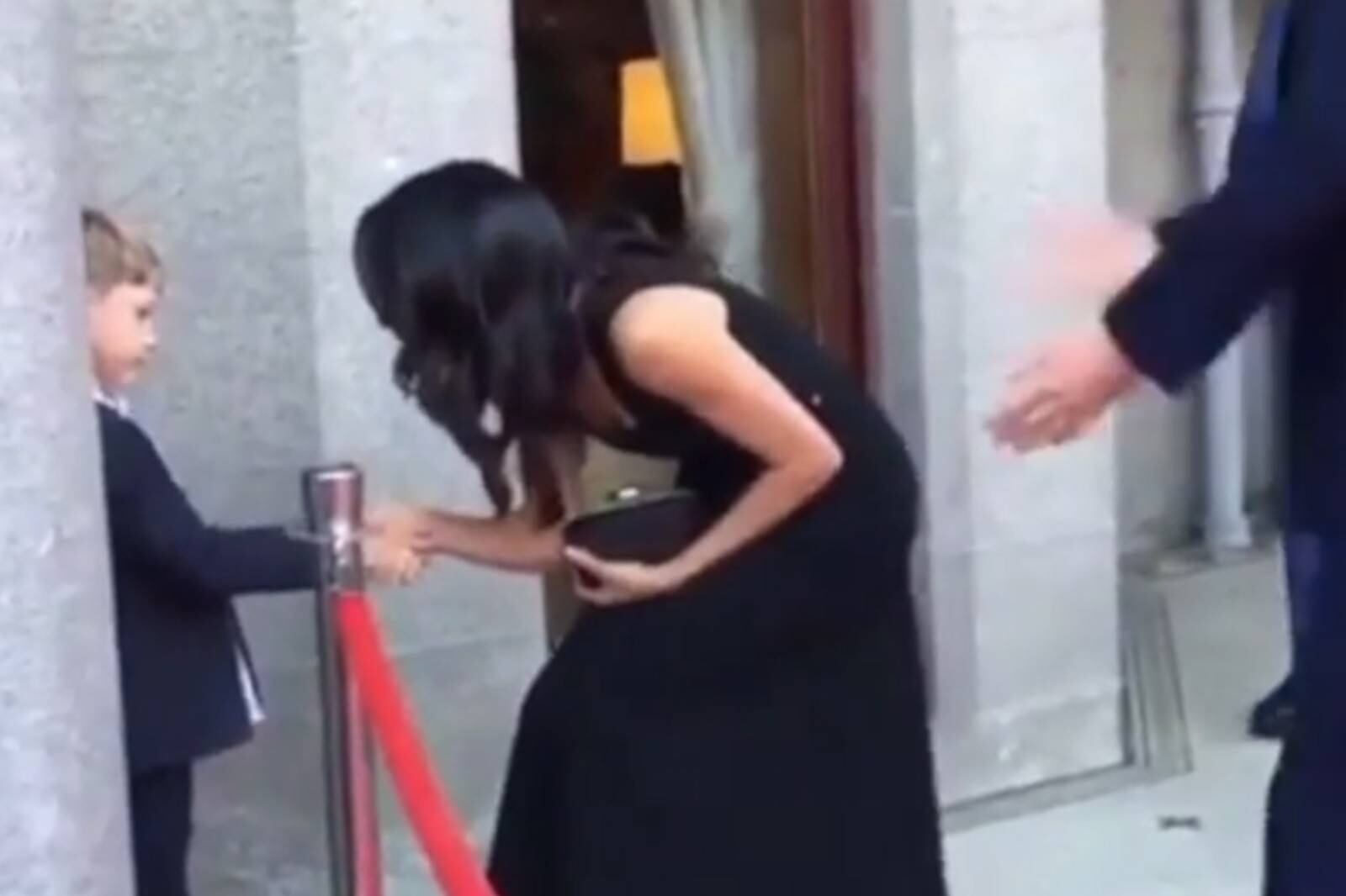 Pero, cuando llegaron a la residencia de los embajadores británicos, Meghan se detuvo en el camino, saliéndose del protocolo para acercarse a un niño que estaba mirando cómo pasaban los duques.