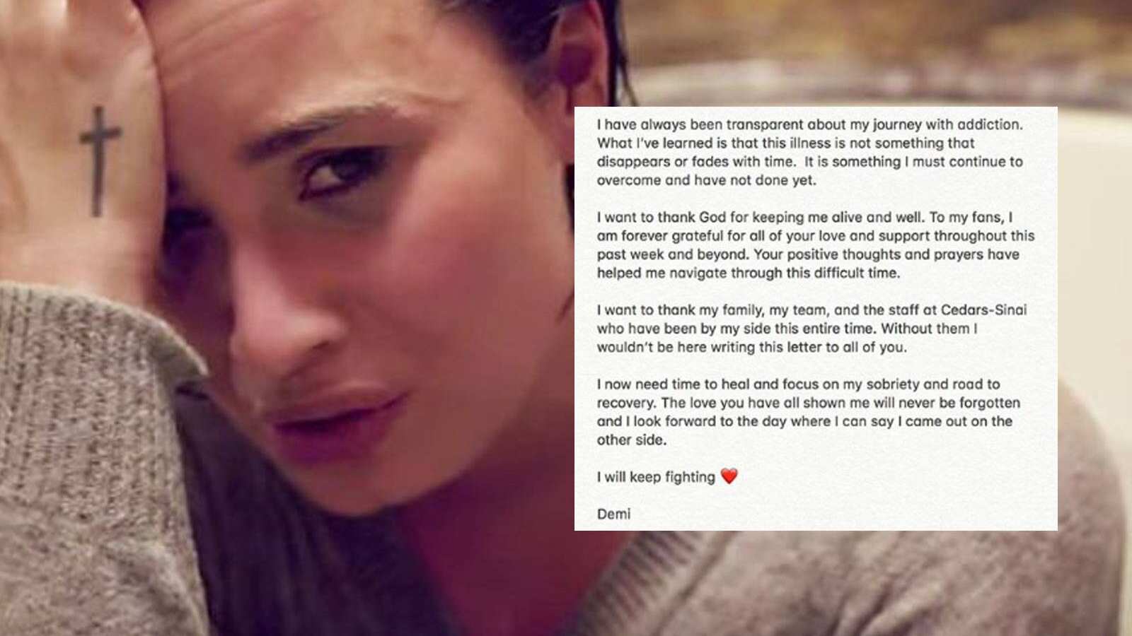 Demi Lovato ha mostrado su primera señal de vida desde el fatídico episodio que vivió este mes cuando sufrió una sobredosis. La cantante y actriz ha hablando por primera vez en una publicación en sus redes sociales en forma de nota. Ésta sería su primera interacción con sus seguidores desde que fue hospitalizada a raíz de la sobredosis a finales de julio.