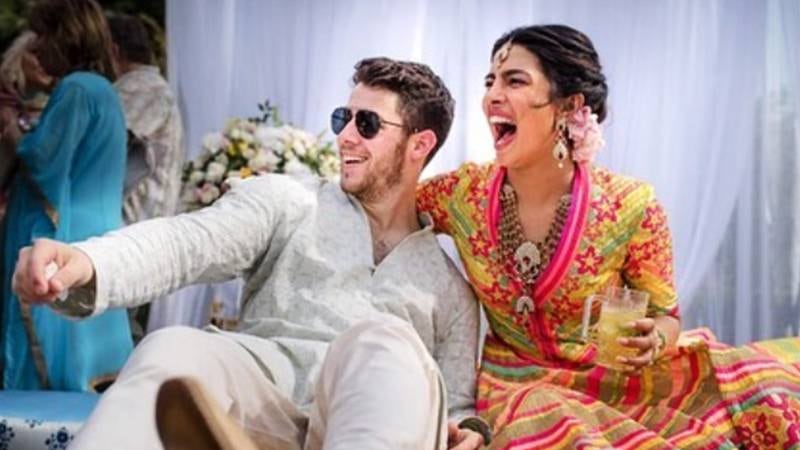 Las manos de Priyanka estaban pintadas con una decoración especial hecha a base de henna. El Mehndi no puede faltar, pues es lo que «decide» el futuro del matrimonio. Este es el arte tradicional de la India que consiste en pintar las manos, los pies o el cuerpo con una pasta hecha de las hojas hechas polvo y secas de la planta de henna. La mancha es generalmente de color rojo cereza a marrón, pero puede variar. La mezcla se aplica típicamente en líneas finas para crear patrones de flores, hojas y espirales que forman un mosaico hermoso.