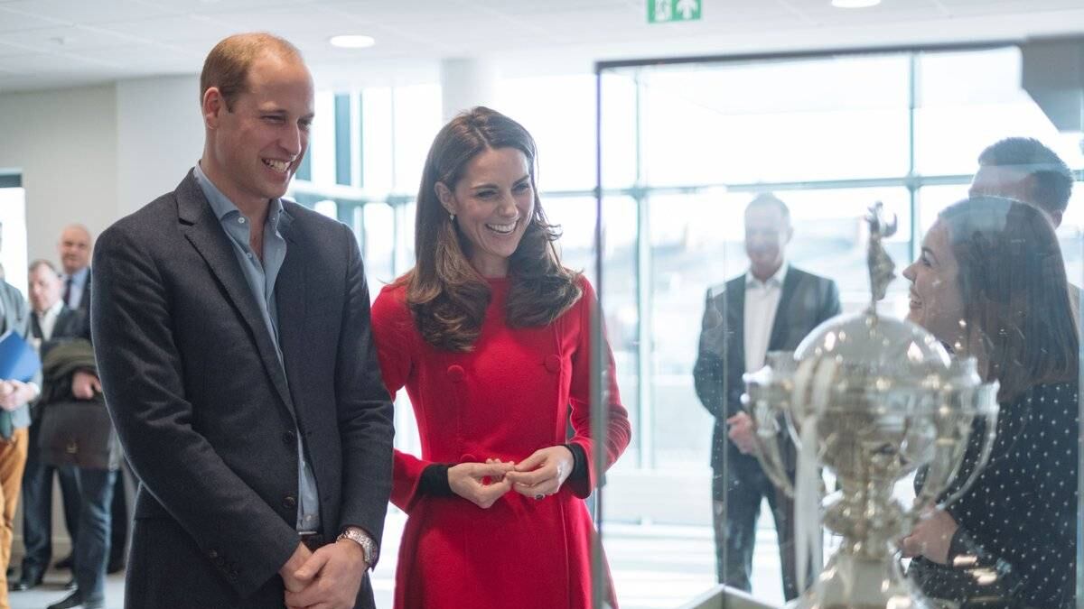 🏆⚽ At Windsor Park Football Stadium, home of the @OfficialIrishFA, The Duke and Duchess of Cambridge took a closer look at the British Championship trophy, won by @NorthernIreland when it was last played in 1984 #RoyalVisitNI pic.twitter.com/zCW4SaRyoN
