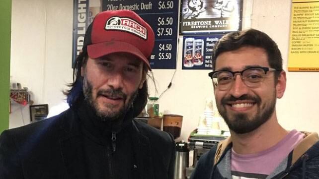 Un pasajero publicó una foto de él mismo de pie junto al barbuda Reeves, que lleva una gorra Arch biker «Esa vez, cuando tu vuelo casi se estrella y tiene que aterrizar en un aeropuerto remoto, al menos Keanu Reeves está teniendo un mal día como tú», escribió el pasajero Amir Blum en Twitter.