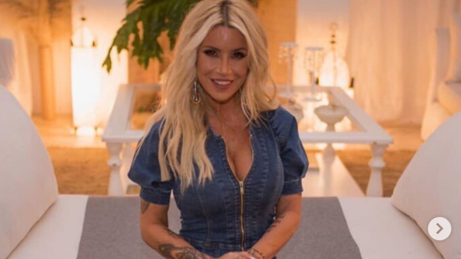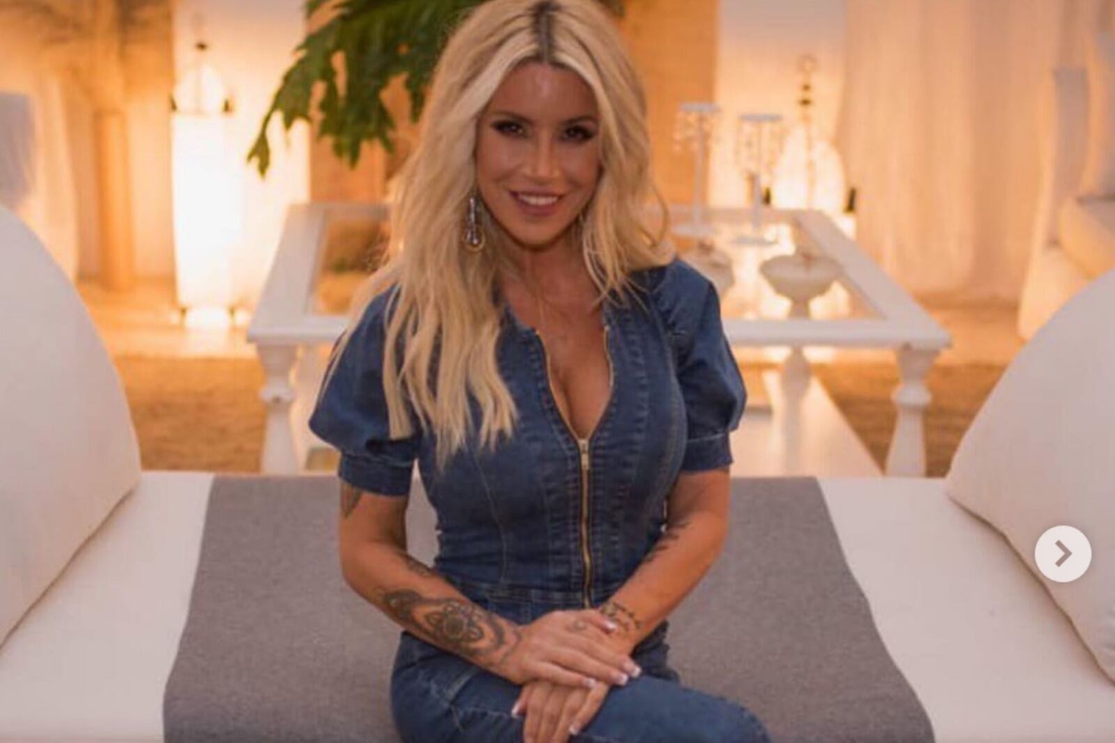 Además, subió fotografías en su cuenta de Instagram, donde posaba en su living con un mono de jean.