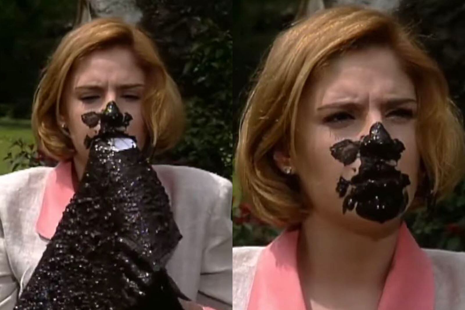 Y es que, a causa de un imprevisto, la producción no pudo contar la mezcla de chocolate de la primera escena con lodo y Chantal se vio obligada a meter su cara en un lodazal de verdad.
