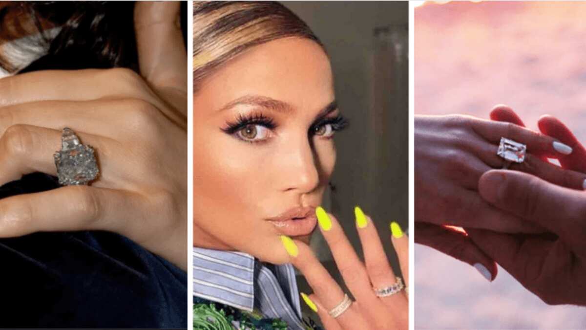 La diva del Bronx ha recibido seis anillos y recientemente presumió en su dedo anular la enorme piedra color verde, colocada en una banda plateada.