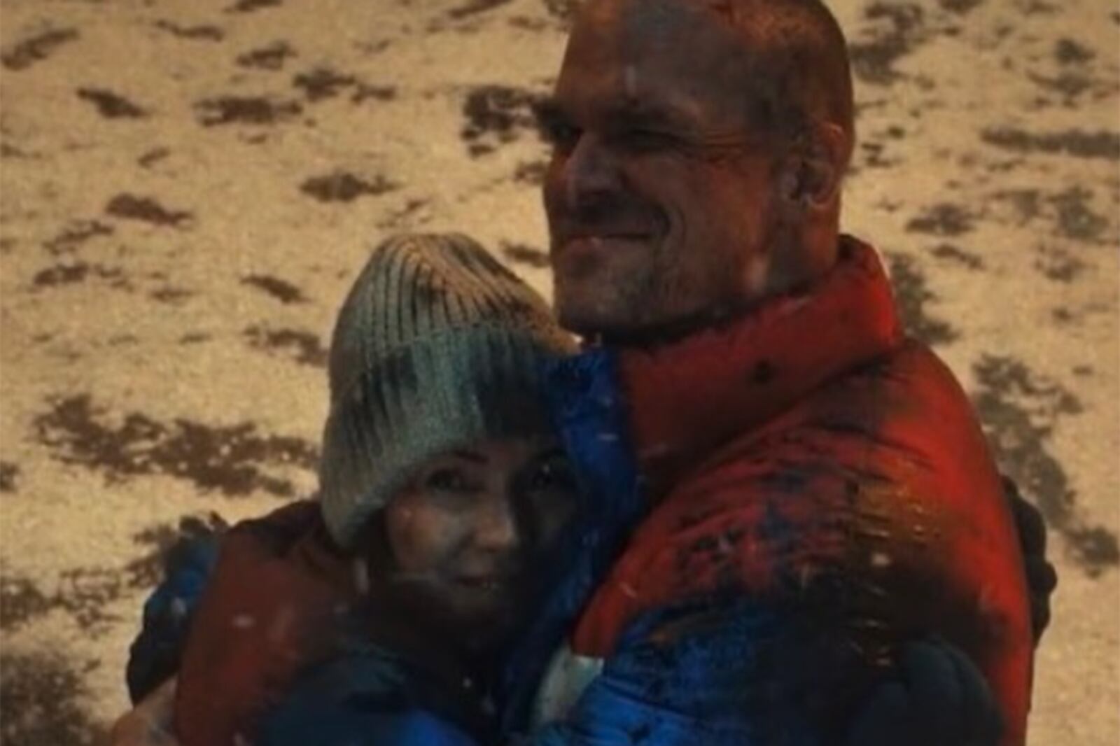 En su cuenta oficial de Twitter se precisó que en medio de la incertidumbre Jim y Joyce improvisaron de la mejor manera que podían hacerlo, sellando su amor con un beso en medio de la incertidumbre que les rodeaba y en la que incluso sus vidas corrían peligro. “Este beso no estaba escrito, Winona y David lo agregaron el día de la filmación. Siempre es algo de lo que Winona y yo hemos hablado: discutimos en el set sobre cuál era su relación en la escuela secundaria y, ya sabes, quiénes son el uno para el otro”, dijo David Harbour durante una entrevista a la revista GQ.
