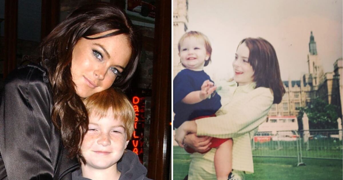 En la dulce postal aparece Lindsay vestida como su personaje Annie James de la película de 1998, ‘Trampa de padres’, mientras posan en el frente al Big Ben en Londres. La única diferencia ha sido es que en aquel entonces la famosa sostenía a su hermanito y ahora ha sido él quien la sostiene en sus brazos.