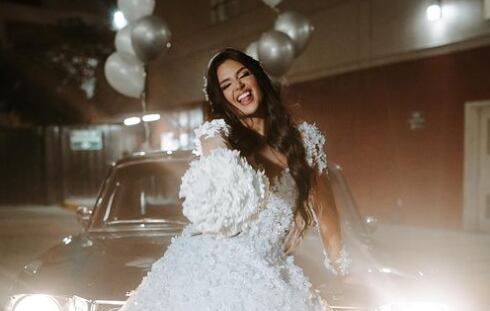 En las imágenes compartidas (5) se aprecia uno de sus primeros besos como esposos; su posterior salida en un automóvil; la ecuatoriana luciendo su ramo de flores; y el espectacular pastel de 10 pisos.