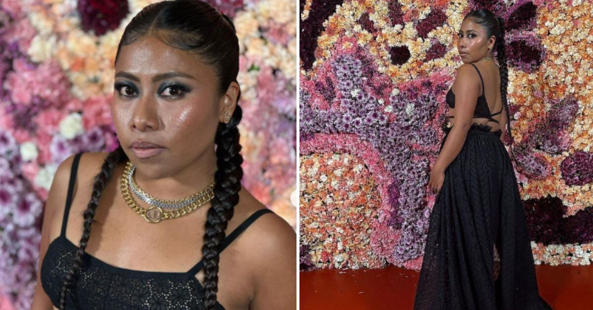 Yalitza llegó al desfile con un conjunto de encaje elegante en negro de pies a cabeza de la colección primavera-verano 2023 de Dior, que se distingue por un top lencero y unas bermudas acompañadas de una larga sobrefalda que abraza la cintura.