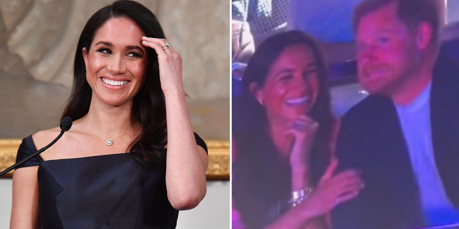 A sabiendas que los duques de Sussex se encontraban ahí, la organización aprovechó el momento para tenerlos en la Kiss Cam, sin embargo, la actriz se mostró muy esquiva con el hijo menor de la princesa Diana.