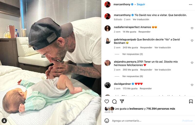 La carriola Dior, no es el único lujo que saltó a la vista, pues, fue la primera fotografía que Marc Anthony mostró al público que su bebé descansaba en un edredón Givenchy, mientras posaba junto a David Beckham.
