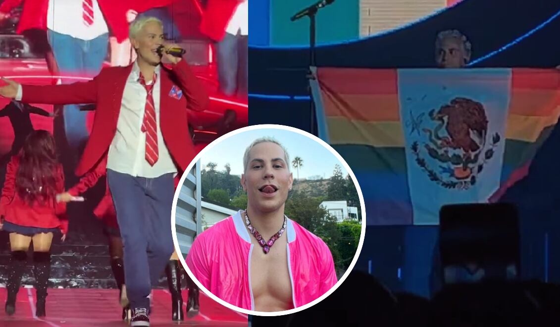 Por si el vestuario no fue suficiente, el integrante de RBD también recibió críticas por aparecer en el escenario con una bandera de México, fusionada con la bandera del movimiento LGBTQI+.