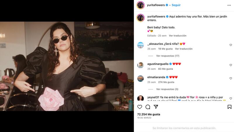 Fue el 13 febrero de este año, cuando, luego de ser víctima de críticas por los cambios en su peso, Yuridia dio el anuncio de que estaba esperando a su segundo hijo con su esposo, Matías Aranda, de 38 años. Un mes después, subió una fotografía con un vestido que tenía una flor al centro de su pancita, donde comentó: “Aquí adentro hay una flor. Más bien un jardín entero. Beni baby! Dalo todo”.