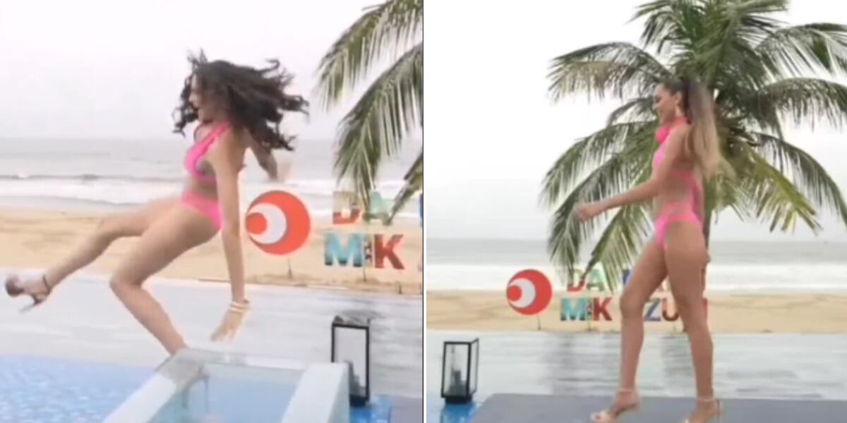 Fueron al menos cuatro misses (República Dominicana, Bolivia, Paraguay y Haití) las que sufrieron dolorosas caídas al aparecer caminando en traje de baño en un piso mojado en medio de la lluvia y con altos tacones, lo cual les complicó la situación.
