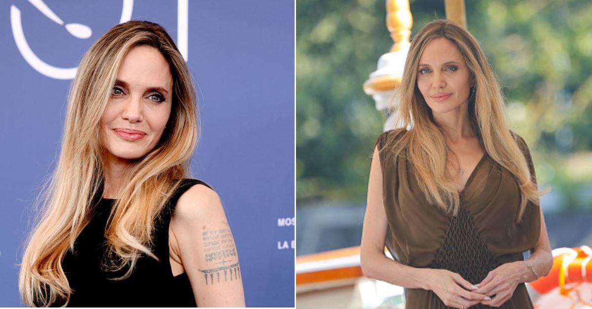 La entrada de Jolie a los muelles del Hotel Excelsior, en el Lido de Venecia, lo hizo posando para los fotógrafos, en principio con un vestido largo de gasa y vaporoso, en un precioso color chocolate otoñal, ajustado a la cintura con nido de abeja, falda fluida y escote en pico pronunciado. Dejando al aire su nueva melena rubia, la combinación perfecta con la que comenzar en otoño, reseñó la revista ELLE.