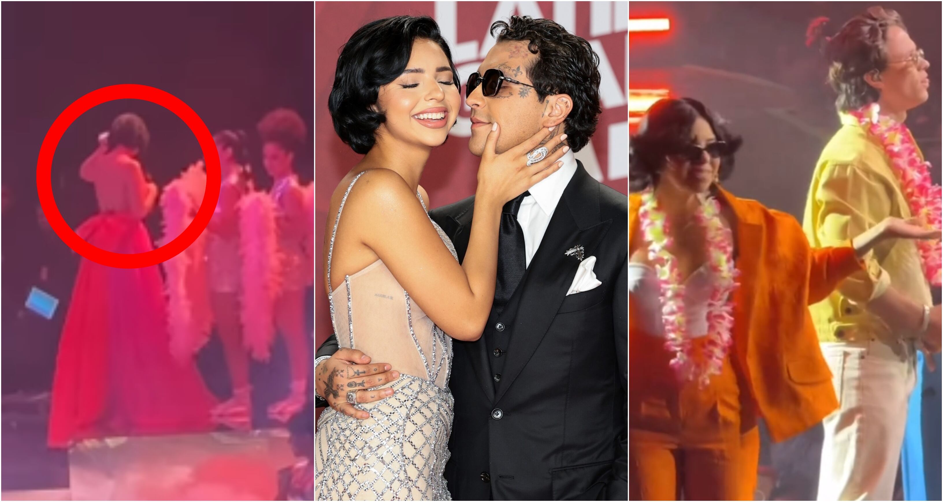 Su aparición en este último reforzó la idea de que podrían estarse enfrentando a una crisis matrimonial ya que circuló un video tras bambalinas en el que se observa a Nodal caminando detrás de Ángela mientras le dice con voz sumisa: “Te acompaño”. Ángela, sin mirarlo, respondió fríamente: “Como quieras”.