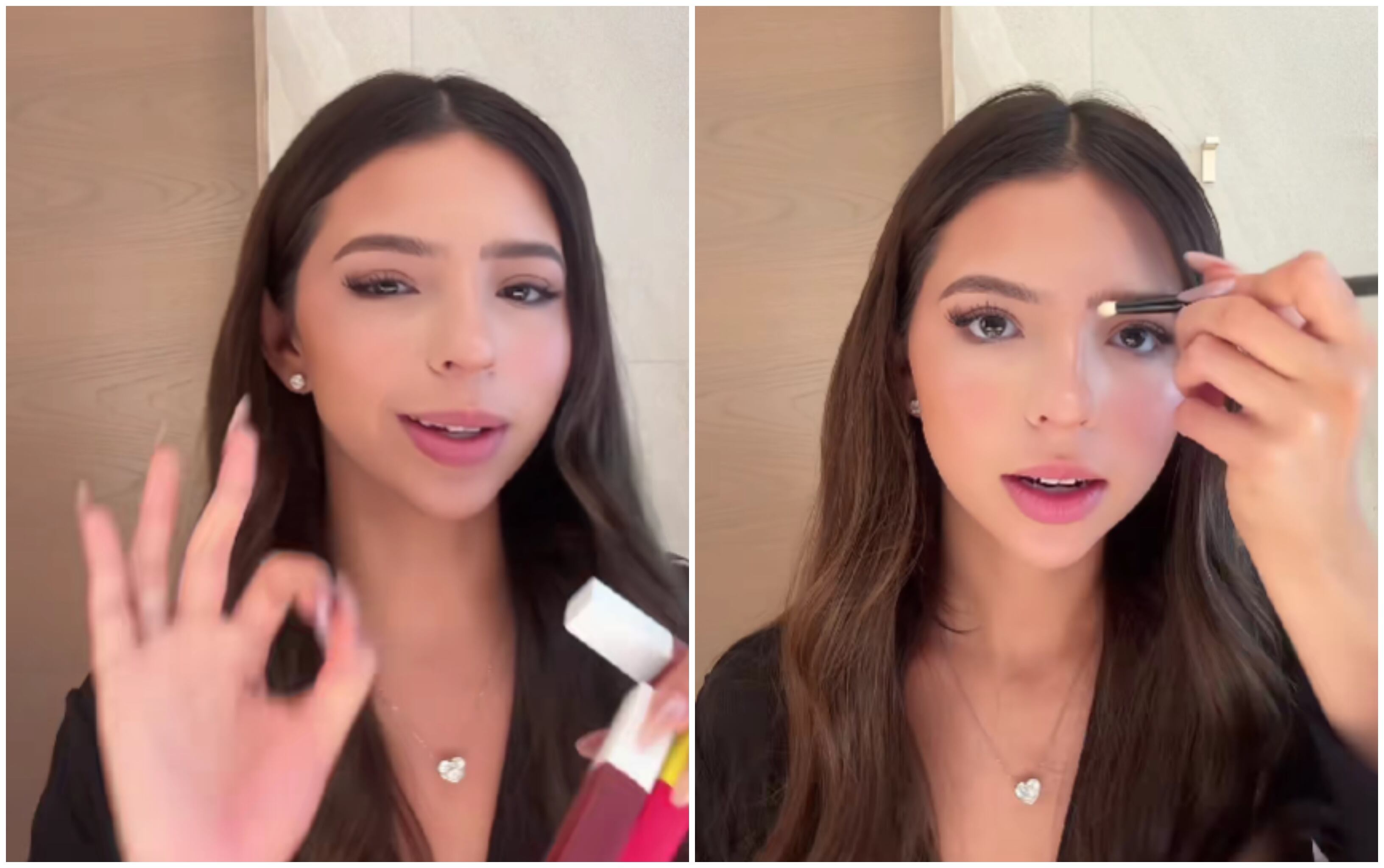 Durante el clip, comenta:“No sé qué labial ponerme. Estos son mis favoritos, son de Maybelline, New York, porque si no, cuando canto parezco el basón, porque se me queda el labial así por todos lados. Entonces creo que lo que voy a hacer es voy a mezclar estos dos para que sea un rojo un poquito más oscuro, pero tampoco tan tanto... Creo que ya quedó el color. ¿Les gustó? ¿No les gustó? Creo que le hubiera hecho tantito más oscuro, pero no sé. Díganmelo en los comentarios.”