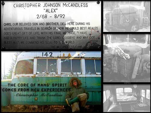 “S.O.S., necesito su ayuda. Estoy herido, cerca de morir, y demasiado débil para hacer una caminata. Estoy completamente solo, no es ningún chiste. En el nombre de Dios, por favor permanezcan aquí para salvarme. Estoy recolectando bayas cerca de aquí y volveré esta tarde. Gracias, Chris McCandless. Agosto?”. Esta nota fue encontrada en la puerta del bus el 6 de septiembre de 1992 por dos excursionistas y un grupo cazadores.