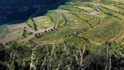 El proceso de implantación de la vegetación se realiza a partir de especies autóctonas muy resistentes, de pocas necesidades hídricas y adaptadas al medio. La plantación se organiza en estructuras vegetales vinculadas a la forma topográfica de las terrazas y a la sucesión y desarrollo de los ecosistemas primarios naturales. Los sistemas de drenaje permiten conducir las aguas de lluvia hacia los depósitos de reserva, permitiendo el riego en las épocas estivales. La formalización de las diversas terrazas ha permitido establecer un sendero que recorrerá todo el espacio restaurado cruzando los distintos campos y subiendo a través de los diversos bancales, conectando con el parque natural.