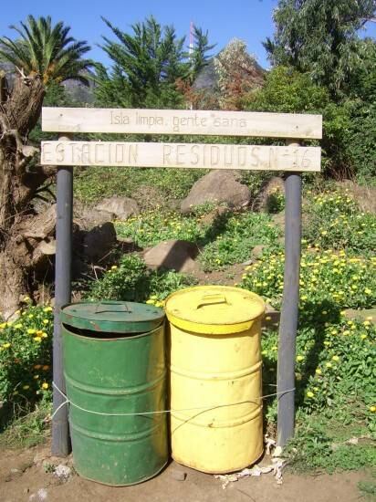 Para esto se instalaron dos basureros en cada puesto: El verde para los desechos orgánicos y el amarillo para los no orgánicos. Lamentablemente y a raíz de un fuerte aluvión, la máquina para compactar que había en la isla quedó completamente fuera de uso luego de quedar llena de barro y sufrir desperfectos tras temporales, que sumado a la falta de recursos para iniciativas como éstas, la idea simplemente quedó en el aire.