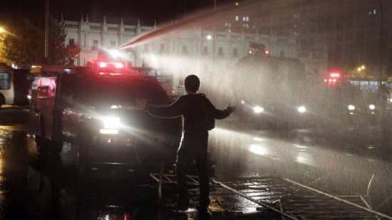 Pese a ser de carácter pacífico y no registrarse desmanes, las Fuerzas Especiales de Carabineros procedieron a disolver la manifestación mediante el uso de y carros lanzaaguas y bombas lacrimógenas, algunas de las cuales fueron a caer en la entrada del metro Baquedano, afectando a pasajeros de diversas edades que poco tenían que ver con la manifestación. Paralelamente esta intervención generó un desorden en la multitud, producto del cual se registraron algunos heridos, aunque al cierre de esta nota no constaba ninguno en estado de gravedad.