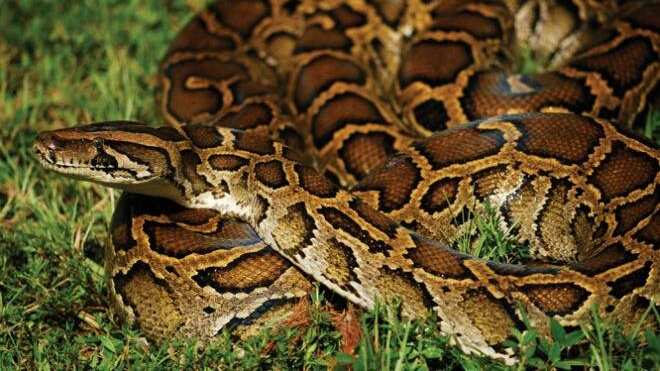La pitón birmana (Python molurus bivittatus) se encontró por primera vez en los Everglades en 1979 -se cree que debido a mascotas que arrancaron o fueron desechadas. Desde entonces, su número aumentó y hoy su población se estima en decenas de miles.