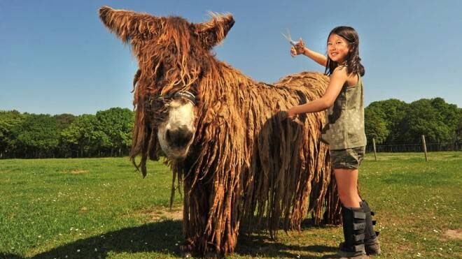 Si Bob Marley estuviese vivo sin duda querría tener de mascota a este asno originario de Francia llamado Baudet du Poitou. Marley jamás le hubiese cortado los perfectos dreadlocks naturales a este animal, pero por fortuna sus dueñas originales si están dispuestas a hacerlo.